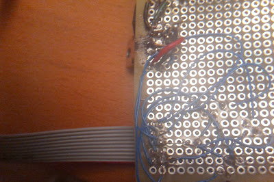 Once I was all done, I took the 10 connector ribbon cable from the Lattice ispDownloadCable, my DMM, my loop and glasses, and my design paper and headed over to Liberty for a schooner of beer and to check the continuity of the power, ground, and JTAG connections. I had misplaced the TMI in pin 21 instead of pin 32. So I fixed that when I got home.