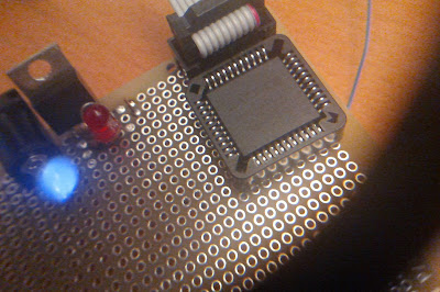 Next, I went to solder in the JTAG connector and a PLCC-44 socket.